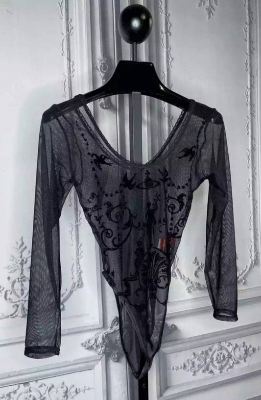 Vivienne Westwood 1992 Boulle Sheer Mesh Black Bodysuit S/S 1992 Salon Collection documented archival piece - Size M